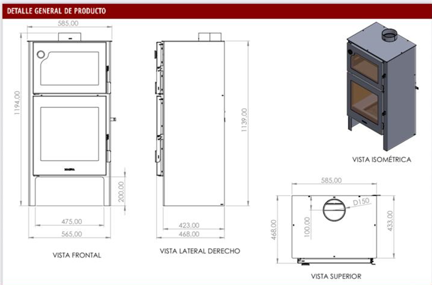 CALEFACTOR ALTA GAMA FORNO 560 CON HORNO- 150 M2