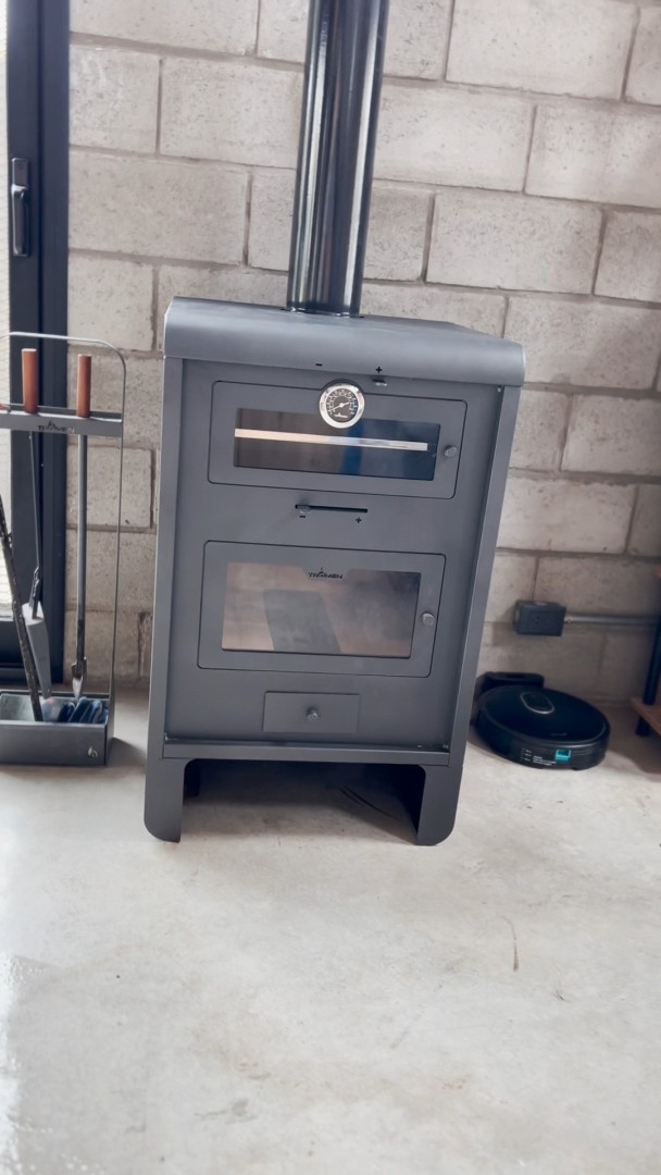 Estufa Tromen P18 de la línea Pehuen, diseñada para brindar calor y estilo a tu hogar. Con doble templador para una combustión completa, encendido rápido y cajón cenicero para mayor comodidad. Además, cuenta con un horno con calor envolvente y bandeja inoxidable, junto con un práctico espacio inferior para guardar leña. Potente con 15000 kcal, ideal para climatizar hasta 120 metros cuadrados.