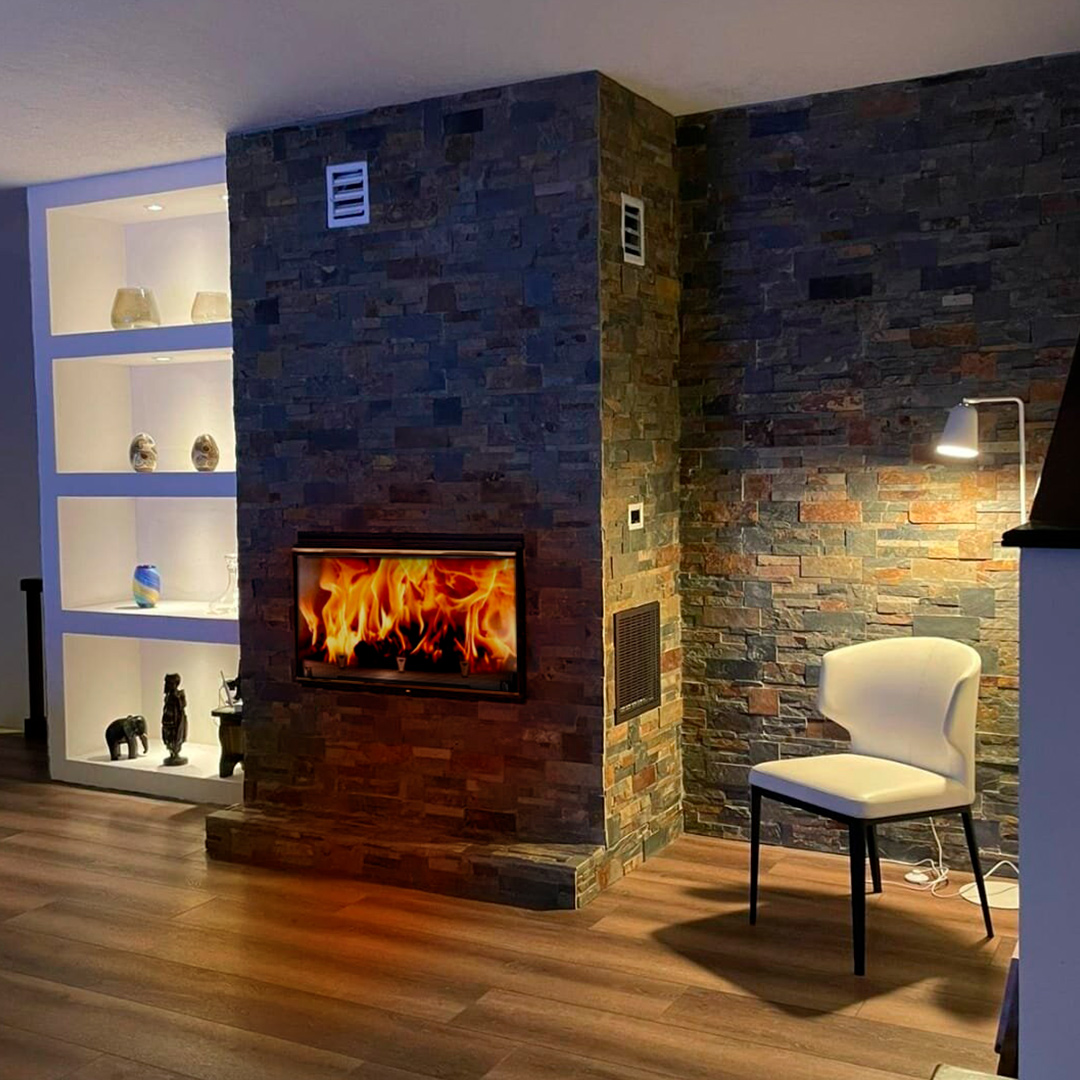 Doble combustión: La inyección de aire precalentado, a través de su doble espalda de hierro fundido, permite una combustión mucho más completa de los gases que pudieran quedar inquemados, mejorando sensiblemente el rendimiento, a la vez que reduce al mínimo la emisión de contaminantes. Este sistema que incorporamos de serie, nos distingue frente a otros aparatos tecnológicamente menos avanzados.